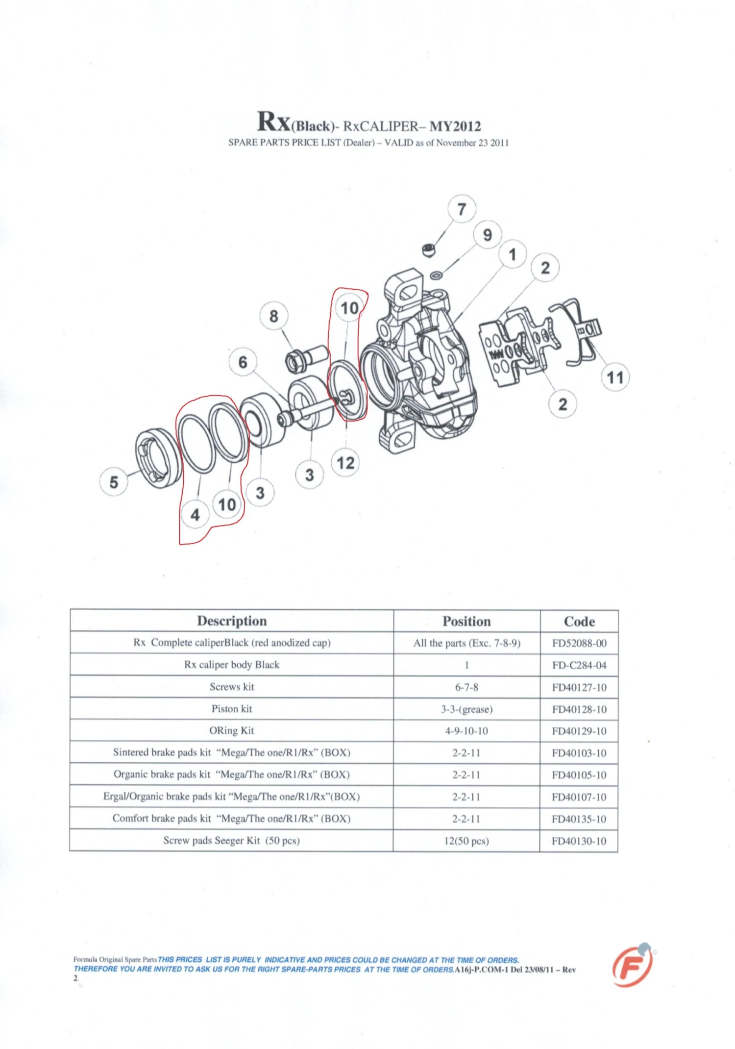 Lieferumfang: 1Stk. O-Ring Kit zu Formula RX Bremssattel