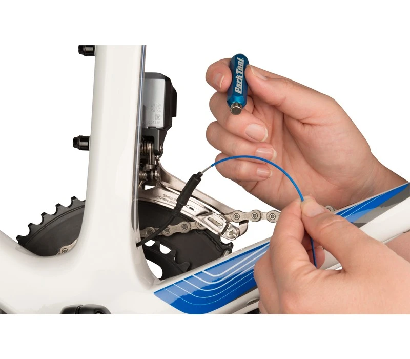 Das Montage-Set IR-1 vereinfacht die Installation von intern geführten elektrischen Kabeln, Bowdenzügen und -hüllen sowie hydraulischen Bremsleitungen in Rahmen aus Carbonfaser, Titan und Aluminium. Es besteht aus einem Führungsmagneten sowie drei 250 cm langen Montagekabeln, die jeweils mit Magneten sowie verschiedenen Führungsspitzen versehen sind. Durch die unterschiedliche Polung von Führungs- und Kabelmagneten lassen sich die zu verlegenden Kabel leicht durch die Rahmenöffnungen fädeln.
