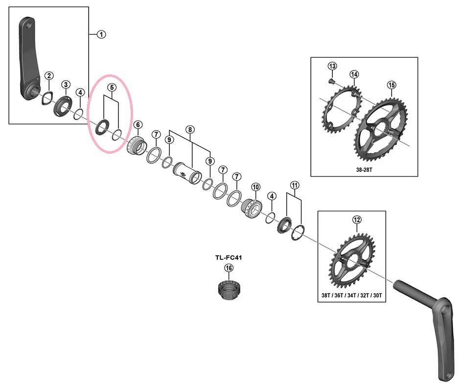 Shimano XTR FC-M9100/20/9020-B1 Kurbel – Distanzscheibe und Ring